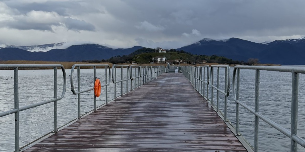 Φωτογραφία: Πεζογέφυρα πάνω από λίμνη, Άγιος Χειλιανός, Πρέσπες.